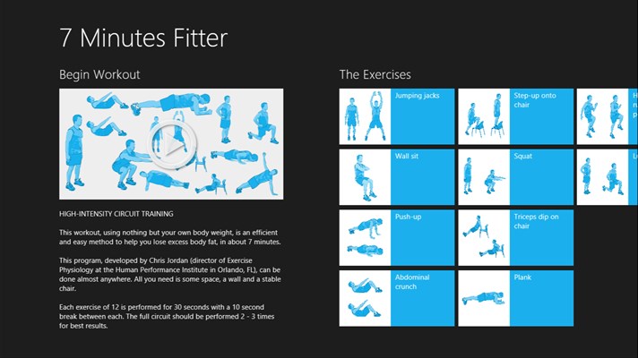 Cada ejercicio tiene una duración de 30 segundos con una descanso de 10 entre cada uno. Se recomienda repetir el circuito dos o tres veces para obtener mejor resultados.
